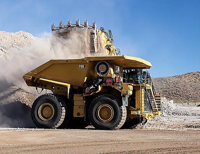 美国也有这种制造企业,现在你所看到的是卡特彼勒798AC矿用自卸车,它的尺寸要比别拉斯75710小,长15.6米,宽9米,高7米多,拉的稍微比别拉斯少点。